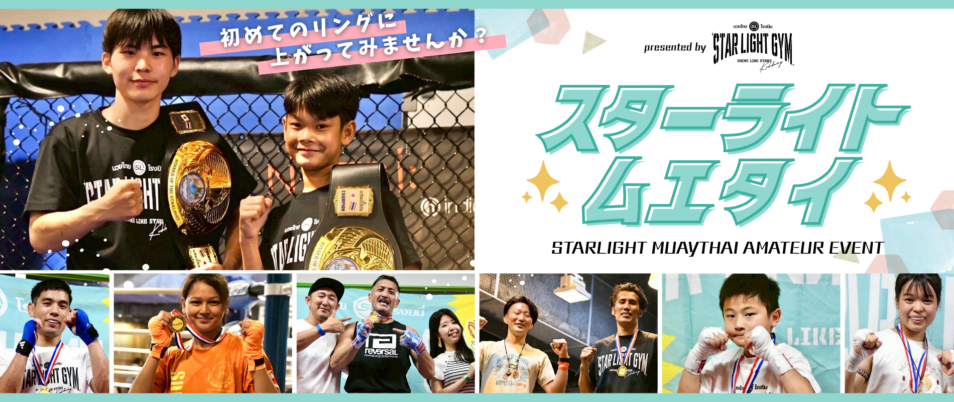 お知らせ 🥊 スターライトムエタイ02 参加者募集のお知らせ! 🥊 2025年12月9日 スターライト01開催について(7月1日更新) 2025年6月3日 2025年7月13日(日) 大森ゴールドジム大会について 2025年5月15日 大会情報 2025年7月13日(日)2025.7.13 スターライト01試合結果(大森ゴールドジム)2026年4月19日(日) 2026.4.19 スターライト02大森ゴールドジム 大会情報一覧 スターライトムエタイの特徴 ・肘なしのムエタイルールです。・レフェリー、ジャッジが現役のムエタイ選手が担当するので、よりムエタイに近い大会となります。・初心者専用のクラスから経験者向けのクラスまで幅広い方が参加できるアマチュア大会です。 公式ルール スターライトムエタイとは 「スターライトムエタイ」とは、肘なしのムエタイアマチュア試合イベントです。東京を中心にキックボクシングジムを運営している「スターライトジム」が開催しています。スターライトジムホームページはこちら格闘技初心者からプロ志向の選手、男性、女性。そして、子供から大人まで様々な選手が参加しやすいようクラス分け・階級分けをしています。レフェリー、ジャッジは現役のムエタイ選手が担当しており、確かな目でしっかりとジャッジをします。Cクラス、Bクラス、Aクラス、Sクラスに分かれており、特にCクラスは初めてキックボクシング(ムエタイ)の試合に出る方にはもってこいのクラスです。安全面に配慮し、「アマチュア大会は怖いけどスパーリングなら。。。。」という選手はぜひご応募ください。なお、スターライトアマチュア大会に出場するにあたり、スターライトジムへの入会や登録は必要ありません。フリーの団体ですので、お気軽にどうぞ。皆さまのご参加をお待ちしています!運営会社:株式会社バンブー